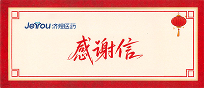 近日,湖州申科收到合作伙伴济煜医药的感谢信